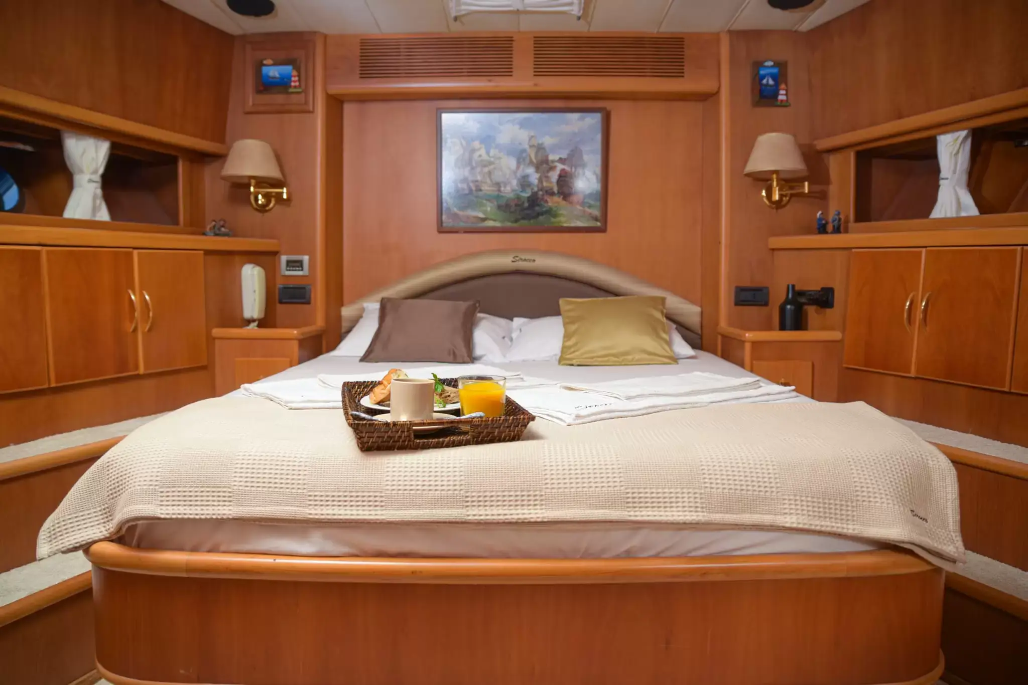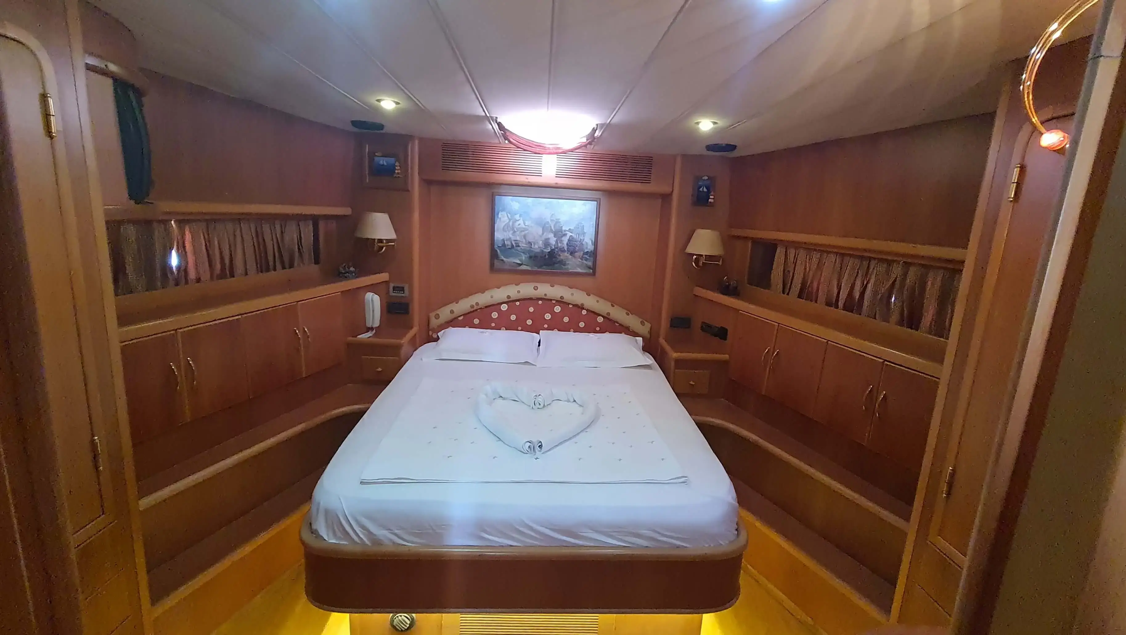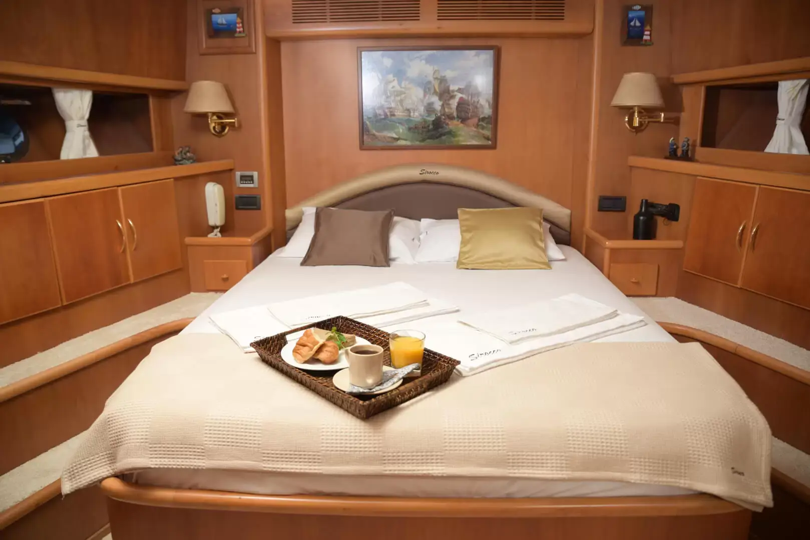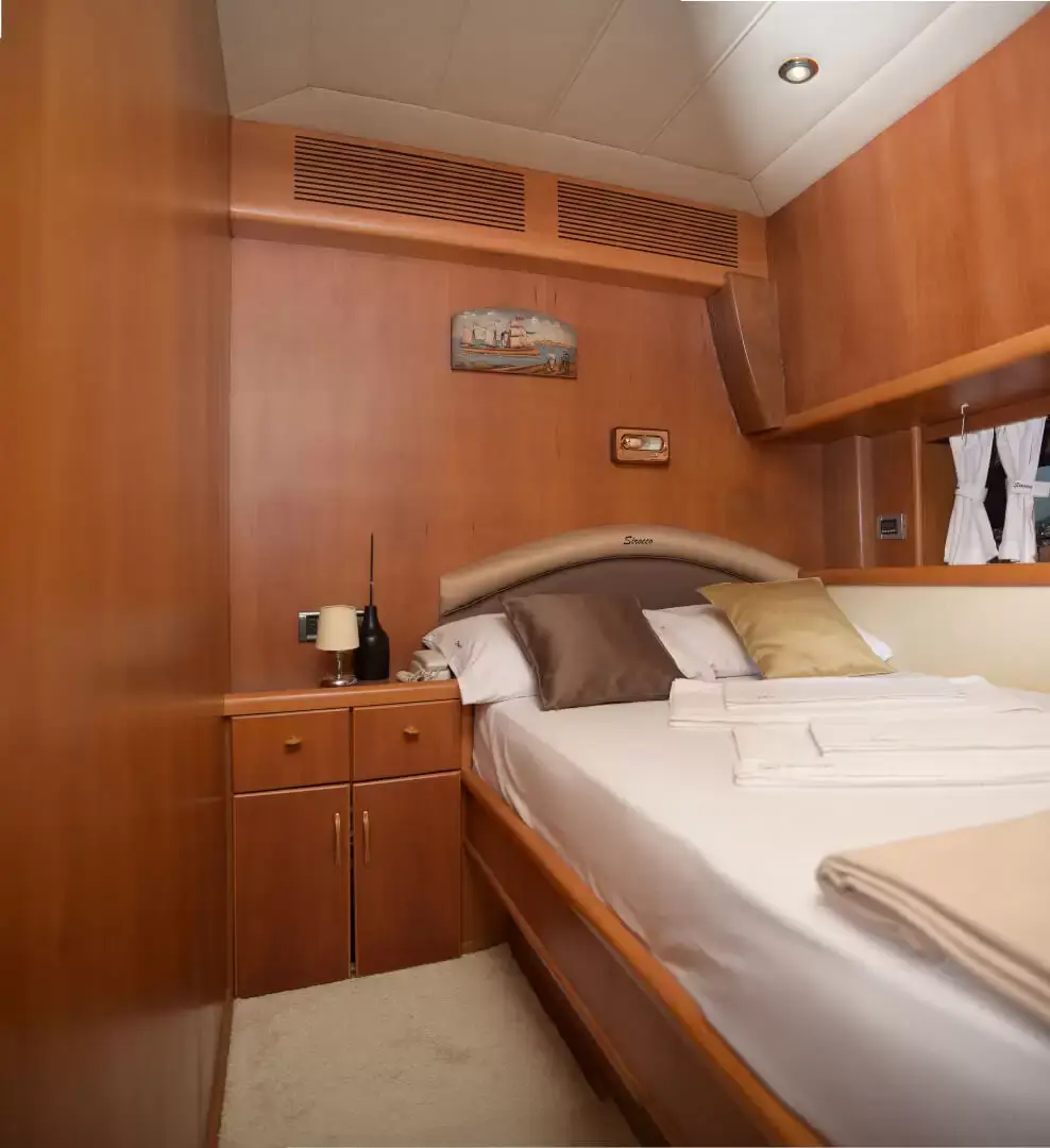 Sirocco allows comfortable accomodation for 6 guests across 3 cabins. The master cabin has its own private bathroom while the doublebed cabin and twin-bed cabin use the common bathroom.